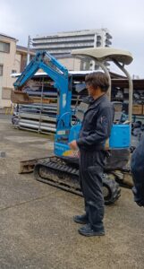 事前のアンケ-トに「重機に乗りたい」と書いてくれた生徒さん。