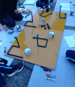 午後は、配管実習とミニユンボによる重機体験。実際に水道配管のミニチュア版を作り、水圧をかけ蛇口から水を出すまでドキドキでしたが、図面通りに完成し、水圧試験も全員合格。蛇口から水が出て感激の様子でした。途中、弊社がスポンサ-をしている「ブリオベッカ浦安・市川」の選手で従業員でもある2人の話を聞く時間もあり、特にサッカ-部の生徒さんは目を輝かせていました。